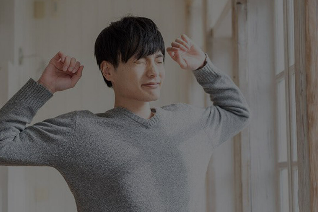 肩甲骨の可動域を広げて内巻き肩を調整します。肩甲骨を動かすことで、凝り固まった肩の疲れやコリもスッキリ!楽に体が動くようになります。